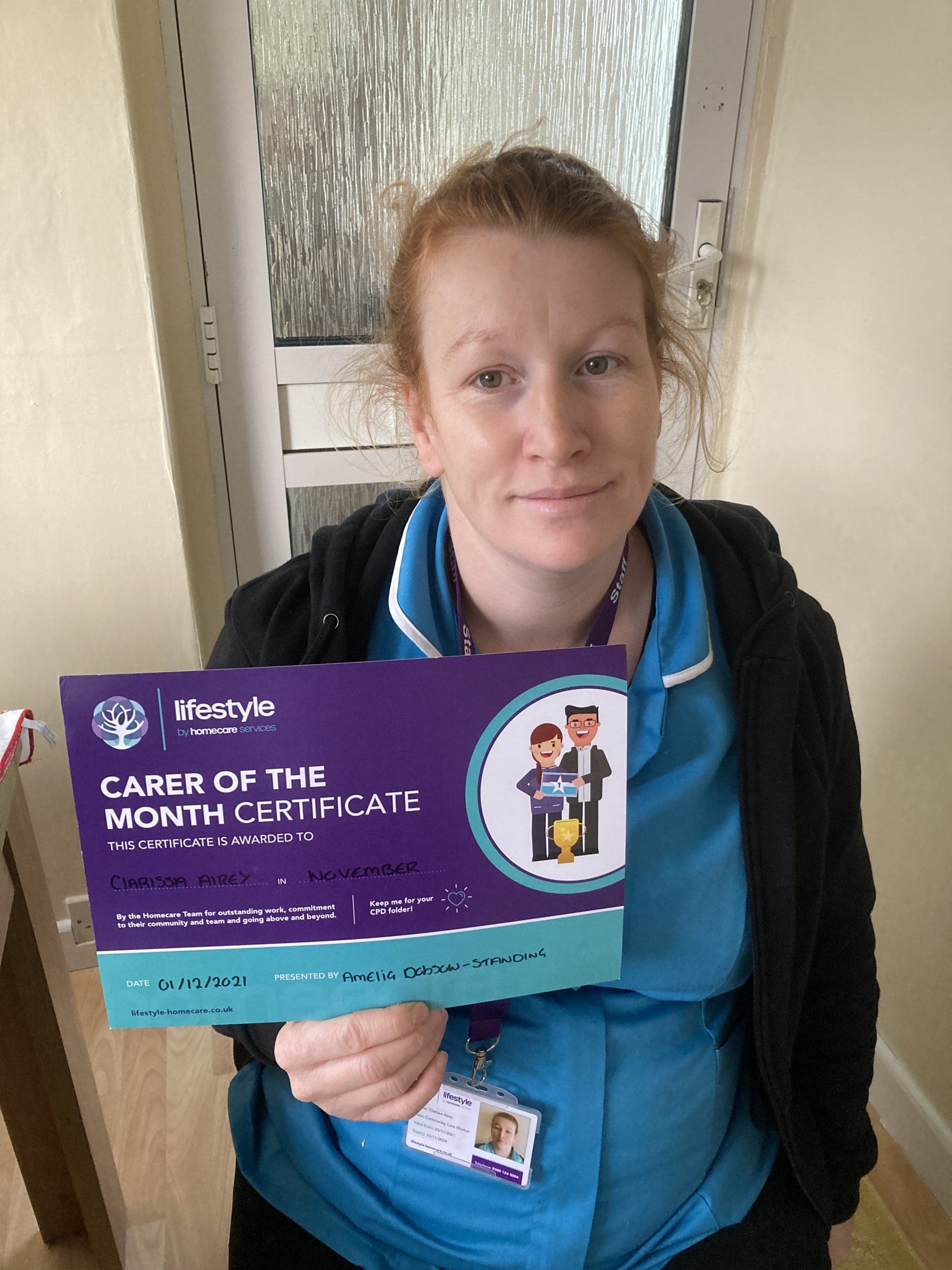All awarded Carer of the Month throughout the offices. Carer of Month is a chance to reward the work of those going above and beyond and who have stood out most during that month. Its a way to reflect and to say thank you. Nominations for Carer of the Year close this evening so please ensure you have voted for who you think deserves this award!